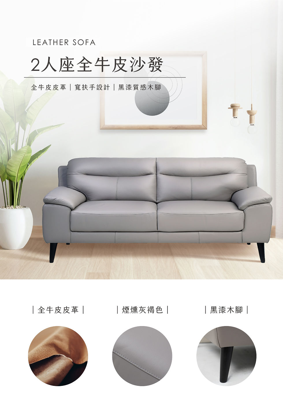 C11062-2人座全牛皮沙發(#Smooky2900煙燻灰褐)